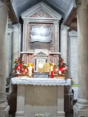 In the Basilica of Sant'Anastasia on the Palatine, we find a large piece of her cloak, present since the 4th century. This relic was reportedly brought to Rome by Saint Jerome, along with a fragment of the Virgin's veil. Both relics are inside a 17th-century reliquary, normally kept in a cabinet with a reinforced door. The reliquary is displayed only on special occasions.